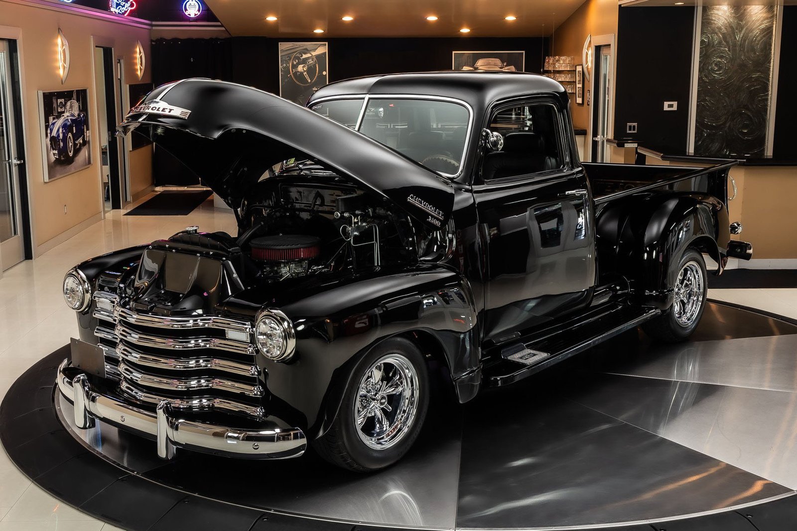Finished in black, the exterior highlights the iconic lines of the 3100 while giving it a more aggressive, modern stance. The combination of classic Chevrolet truck design with tasteful mechanical upgrades makes this 1953 model an appealing option for enthusiasts who want vintage style without sacrificing everyday usability.