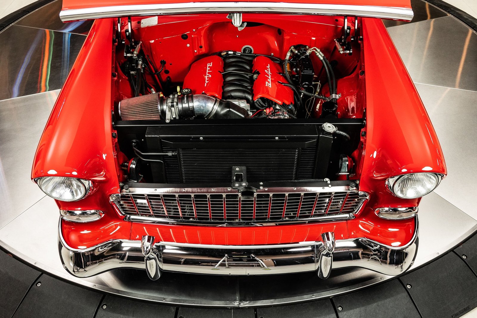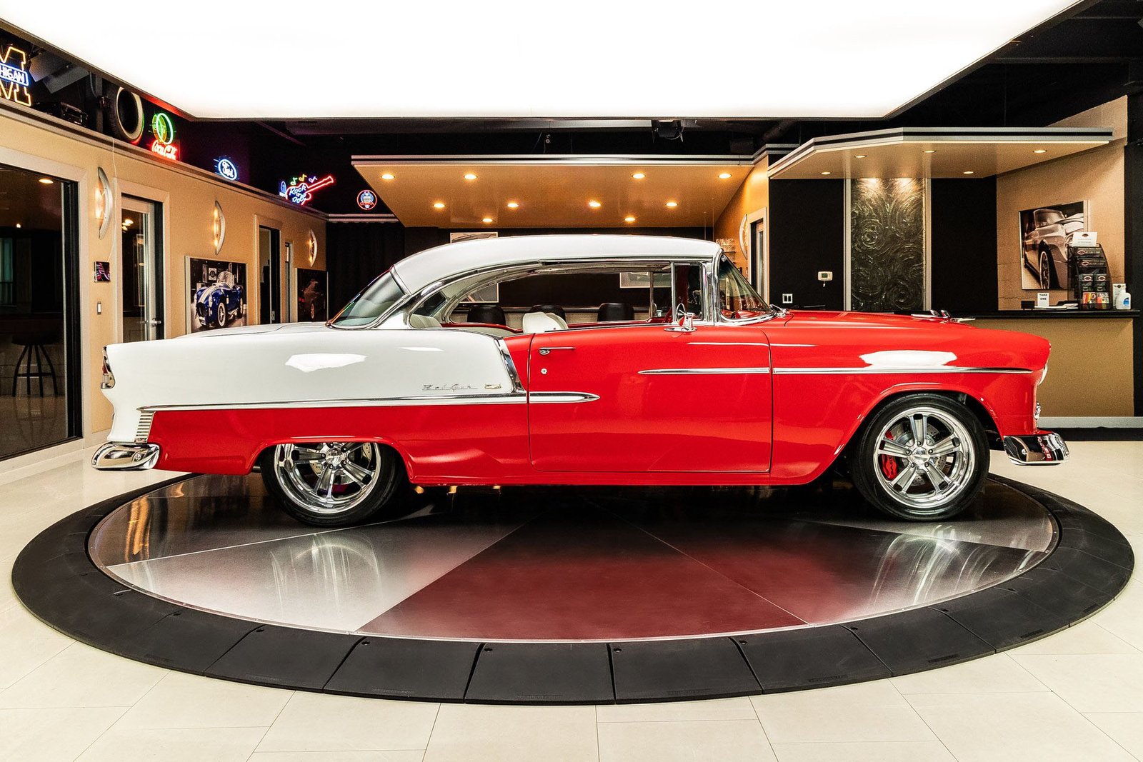 Driving dynamics have been thoroughly modernized as well. Independent front suspension, a multi-link rear setup, power rack-and-pinion steering, and four-wheel power disc brakes provide confident handling and strong stopping power. These upgrades allow the car to perform more like a modern vehicle while retaining the unmistakable feel of a classic ’50s Chevrolet.
