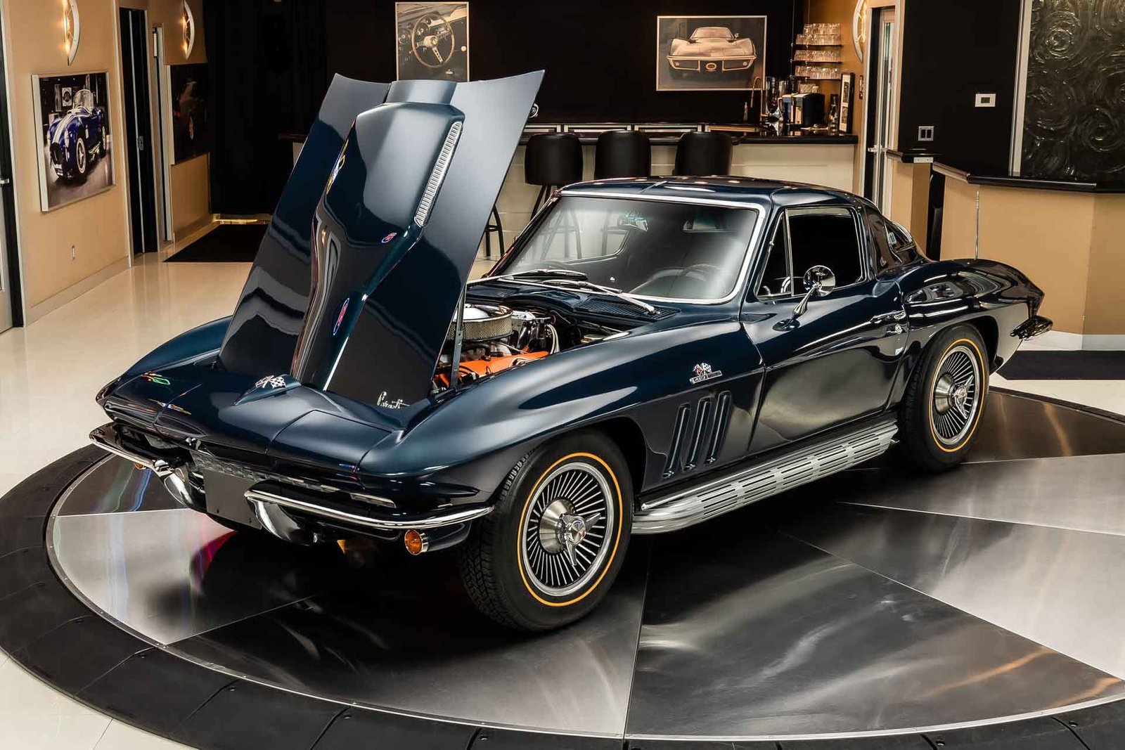 Inside, the black interior remains faithful to original specifications, featuring bucket seats, factory instrumentation, and classic Corvette cockpit design. From the restored undercarriage to the documented drivetrain and award recognition, this Stingray Coupe represents a rare opportunity to own a meticulously restored, historically significant Corvette built to exacting standards.