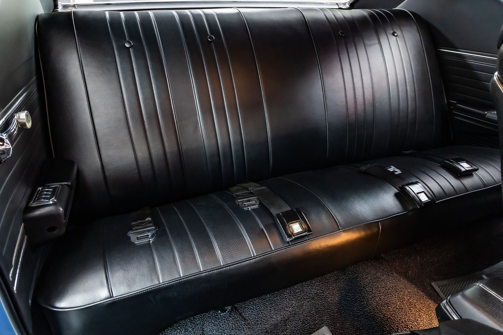 This example is a documented Super Sport that has undergone a complete, no-expense-spared frame-off restoration, resulting in a car that presents at an exceptionally high level. Finished in Dark Blue Metallic with a contrasting white side stripe, the exterior highlights the Chevelle’s muscular proportions while remaining true to its factory-correct appearance. The overall fit and finish reflect the care taken to preserve originality throughout the build.