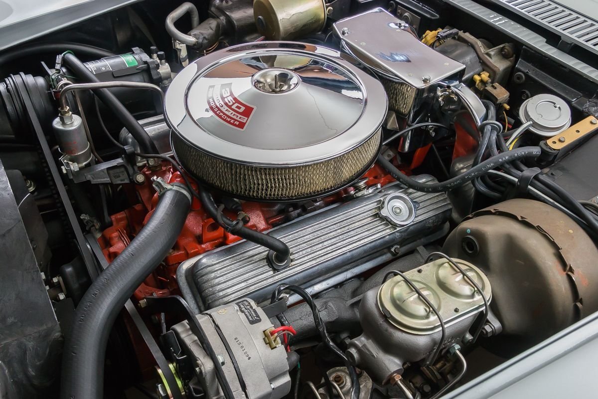 This example benefits from a frame-off restoration completed in the early 2000s and has been carefully preserved since, seeing only limited use at car shows. Finished in Cortez Silver over a black interior, the car presents with a clean, period-correct appearance that highlights the Corvette’s sharp lines and timeless proportions. Details such as redline tires and factory air conditioning further reinforce its authentic late-1960s character.