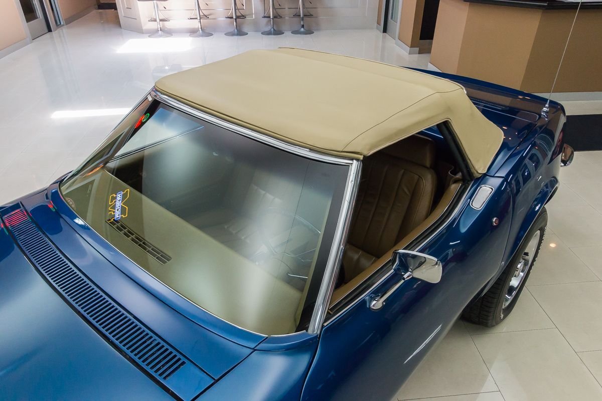 This example has undergone a frame-off restoration and has been carefully owned and lightly driven since completion. Finished in a rich blue metallic with a contrasting tan convertible top, the car presents with clean lines, excellent panel fit, and a well-preserved appearance that reflects proper care and storage. The convertible configuration adds an extra layer of enjoyment, allowing drivers to fully experience the sound and feel of a classic Corvette V8.